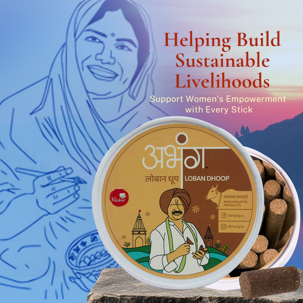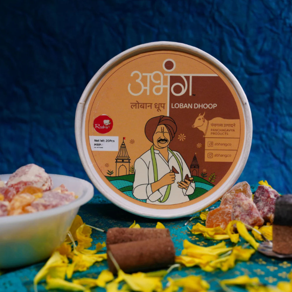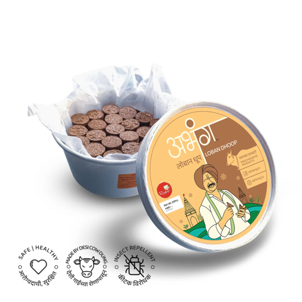 अभंग लोबण धूप काठी, कोळसा मुक्त, दीर्घकाळ टिकणारा नैसर्गिक सुगंध, शेणखताने बनवलेला, कोणतेही कृत्रिम सार नाही, 20 काड्यांचा पॅक