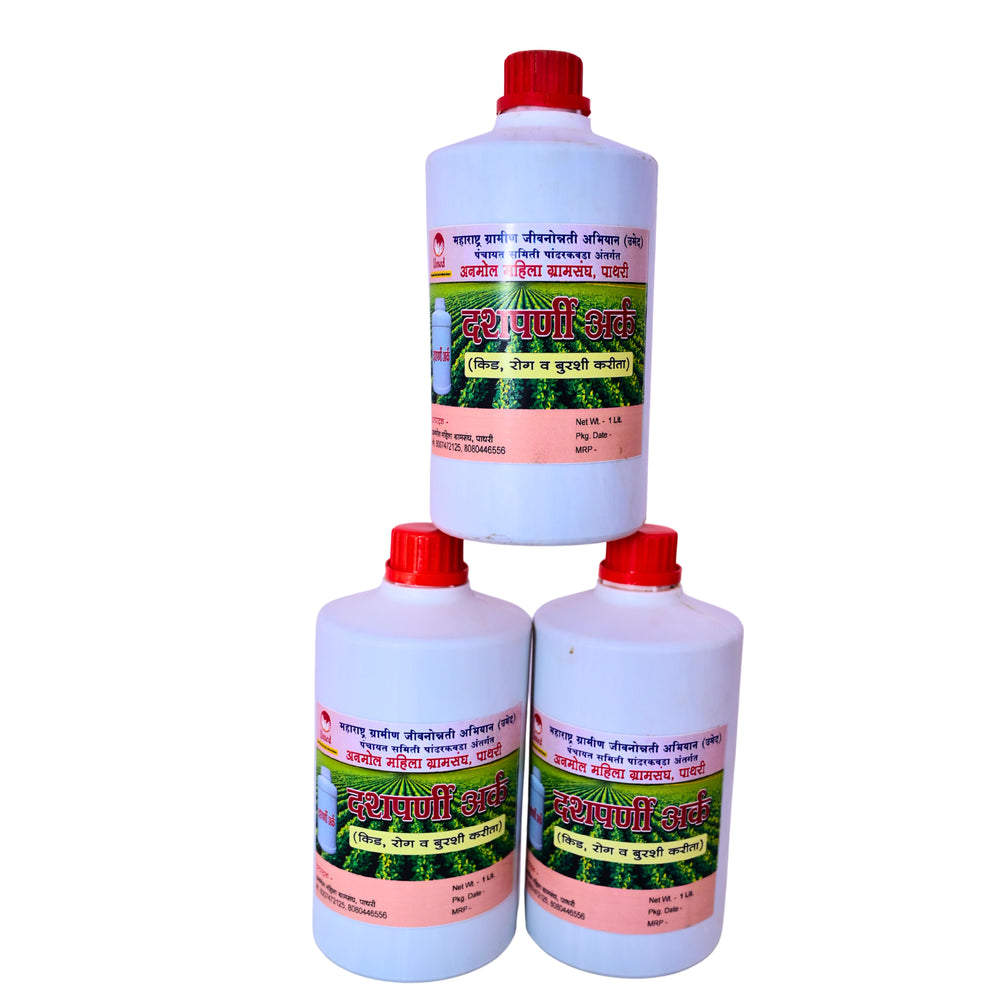 ANMOL Dashparni Ark, produced by Anmol SHG, is a traditional natural farming preparation used as a multipurpose bio-pesticide. This 1000ml eco-friendly solution is safe, chemical-free, and effective in protecting crops, enhancing soil fertility, and promoting sustainable agriculture practices.
