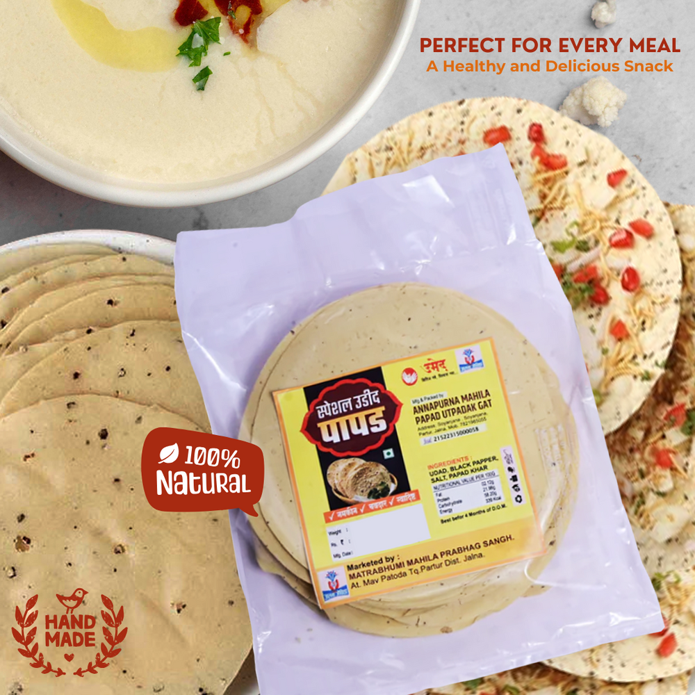 - आरोग्यदायी आणि पौष्टिक: नैसर्गिक घटकांपासून बनवलेले हे पापड हेल्दी स्नॅक पर्याय आहेत.