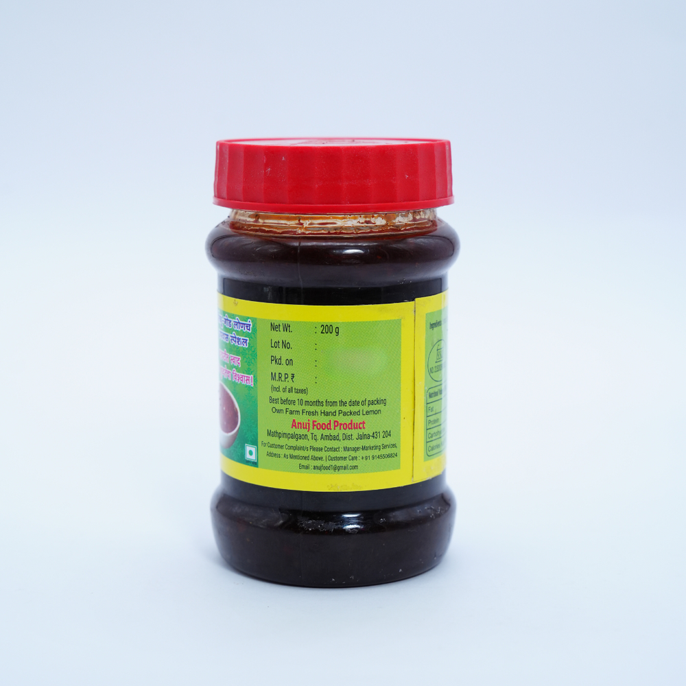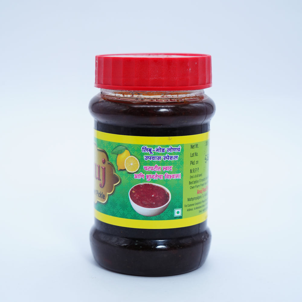 अनुज फूड्स गोड लिंबाचे लोणचे, नैसर्गिक घटकांनी बनवलेले, कोणतेही कृत्रिम स्वाद नाही, 200 ग्रॅमचा पॅक