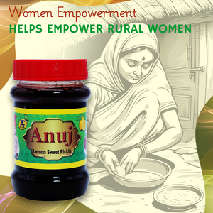 - ग्रामीण उपजीविकेचे समर्थन करते: अनुज फूड्स गोड लिंबू लोणचे निवडून, तुम्ही अंबड, जालना येथील ग्रामीण महिला कारागिरांच्या उपजीविकेचे समर्थन करता, त्यांना शाश्वतपणे उदरनिर्वाहासाठी सक्षम बनवता.