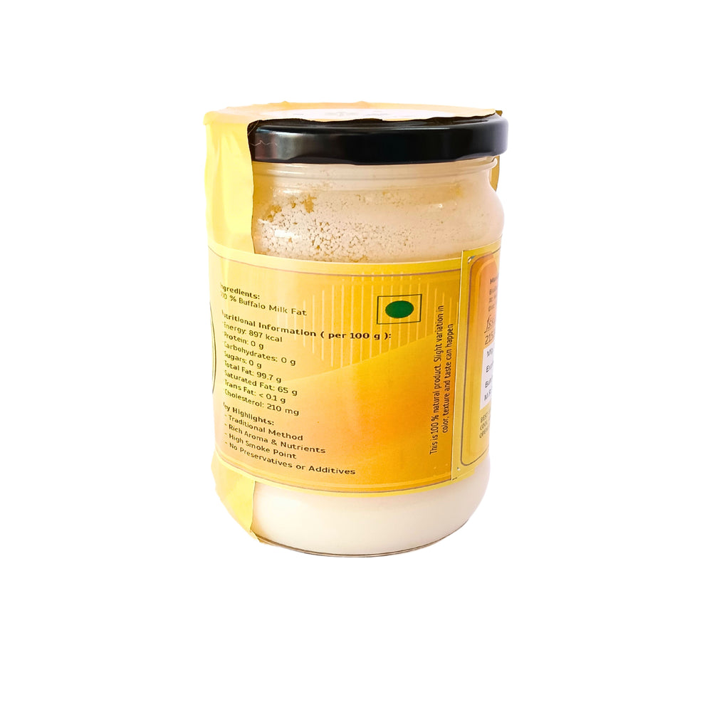 Buffalo Desi Ghee is prized for its dense nutrition, authentic taste, and multiple health benefits. It strengthens bones, boosts immunity, and improves digestion. Ayurveda recommends buffalo ghee for its cooling nature, promoting restful sleep and helping to balance body heat.