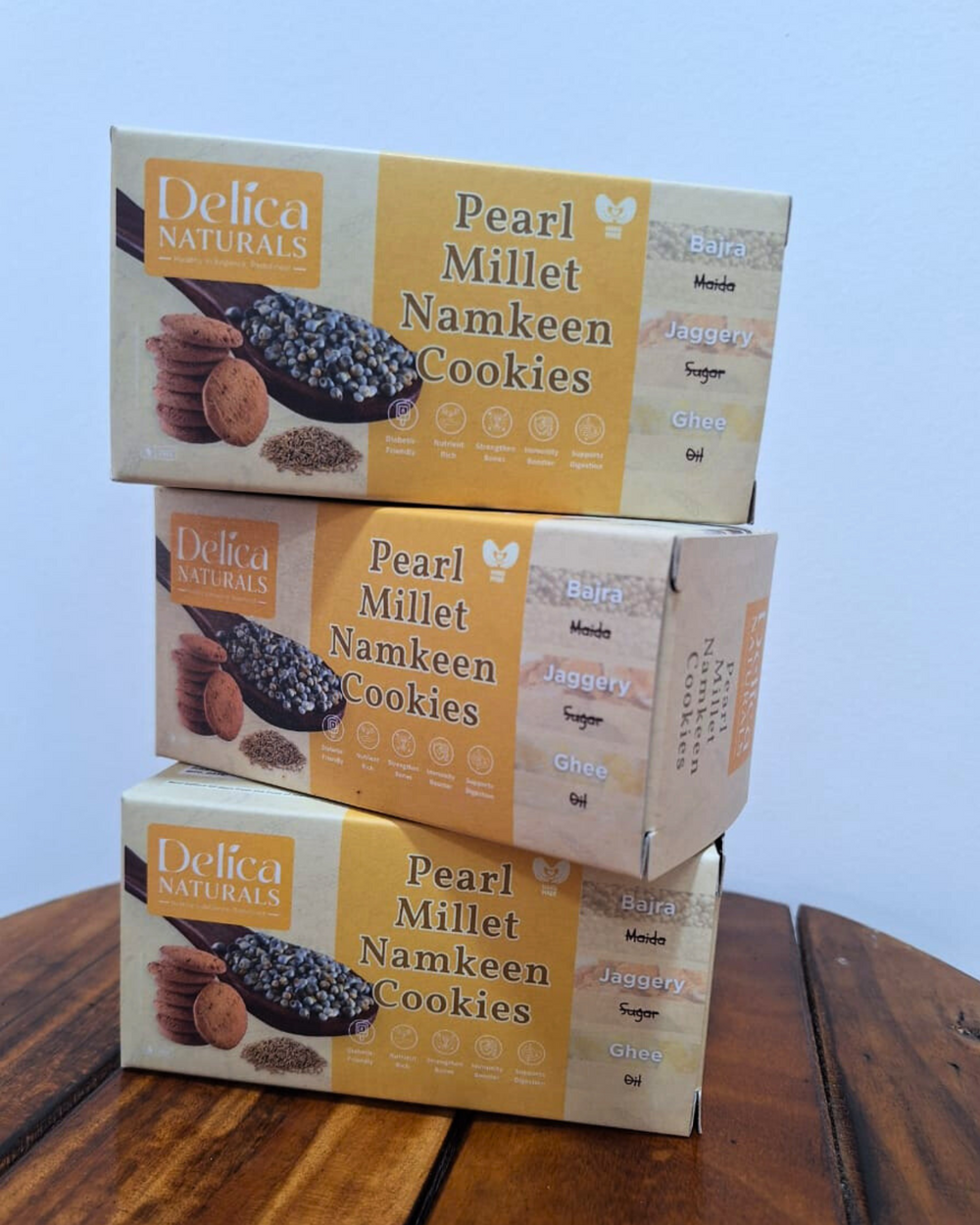 Bajra has long been part of rural Maharashtrian diets, especially in drought-prone regions like Solapur. Traditionally consumed as bhakri and snacks, it represents resilience, nourishment, and sustainability. DELICA NATURALS Bajra Namkeen Cookies carry this legacy forward by transforming a traditional grain into a modern, convenient snack.