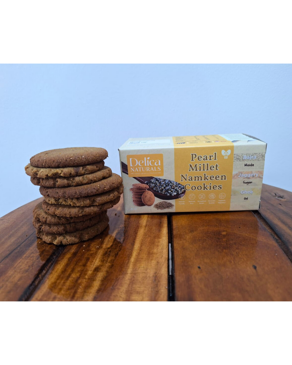 DELICA NATURALS Bajra Namkeen Millet Cookies Made with Jaggery and Ghee Pack of 100gm