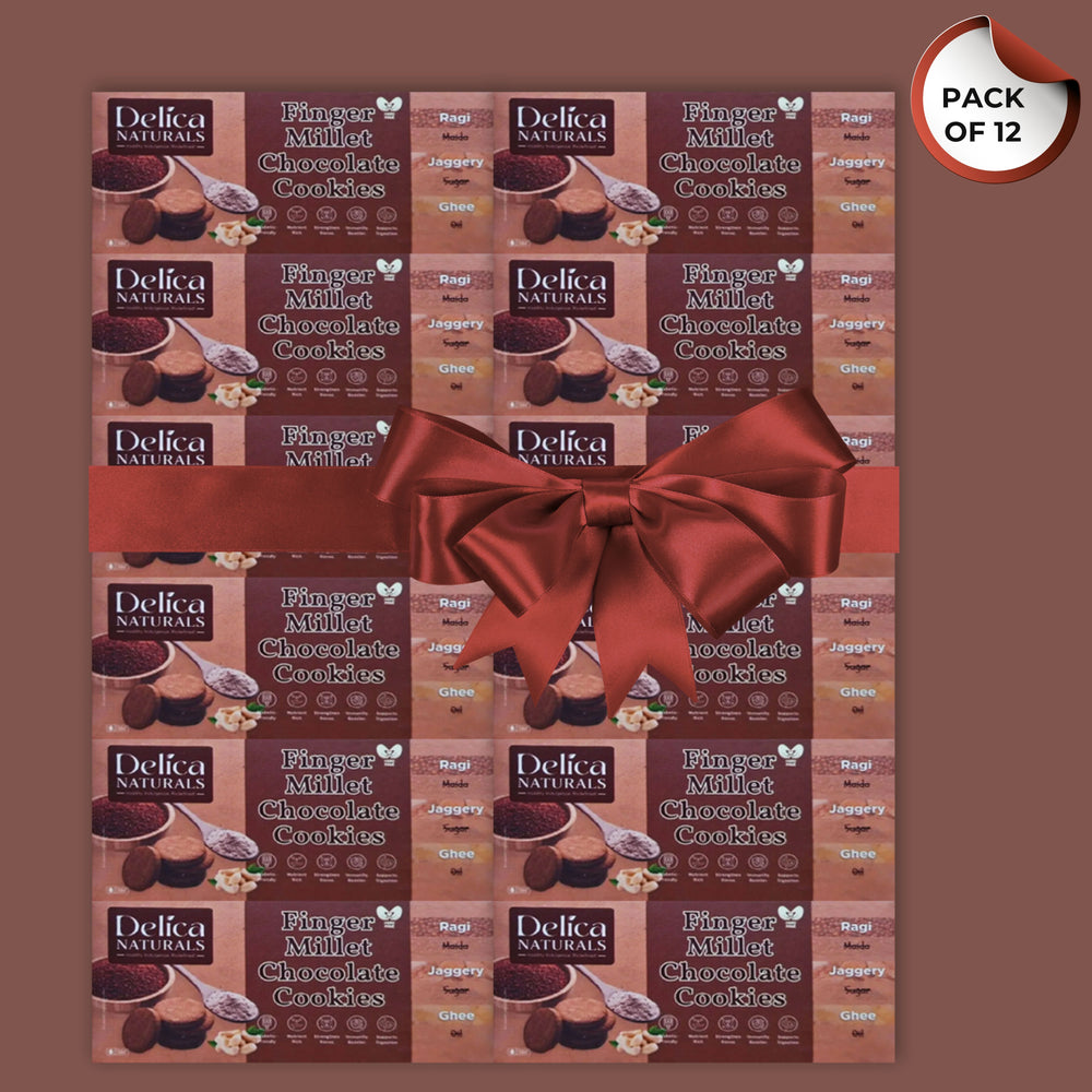 In addition to the health benefits of ragi, the inclusion of ghee enhances digestion and gut health. The addition of cocoa and chocolate chips provides a satisfying indulgence, allowing you to satisfy your sweet tooth without the guilt. Whether you're enjoying them with tea or as an on-the-go snack, these cookies are the perfect combination of health and flavor.