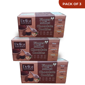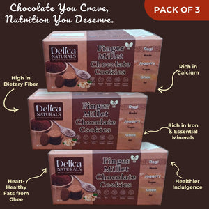 DELICA NATURALS Ragi (Nachani) Chocolate Cookies, Value Pack of 3, Stri Shakti SHG, Made by Jaggery & Ghee, No Maida, No Oil, No Sugar, Pack of 100 gm each