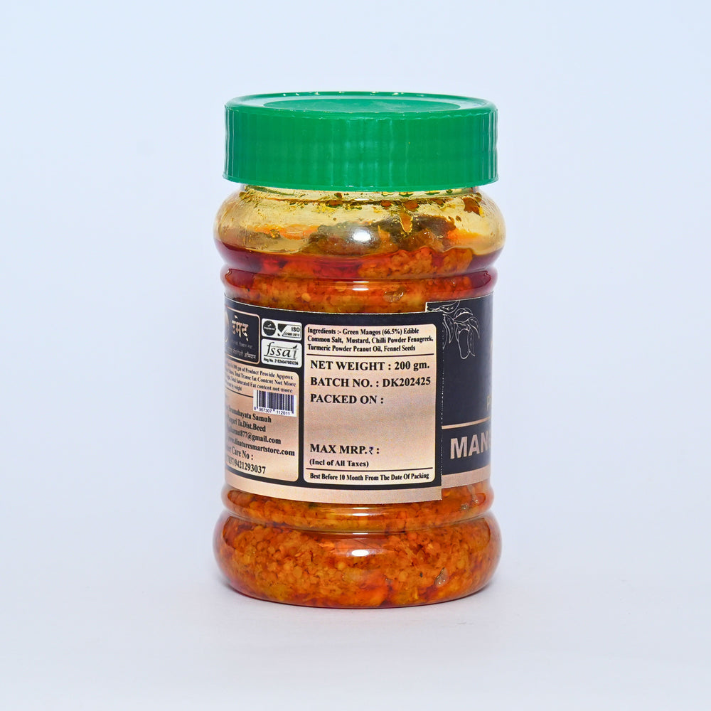- Traditional Recipe: The Mango Pickle is prepared using a traditional recipe passed down through generations, combining spices and natural ingredients to deliver a bold, unique flavor.