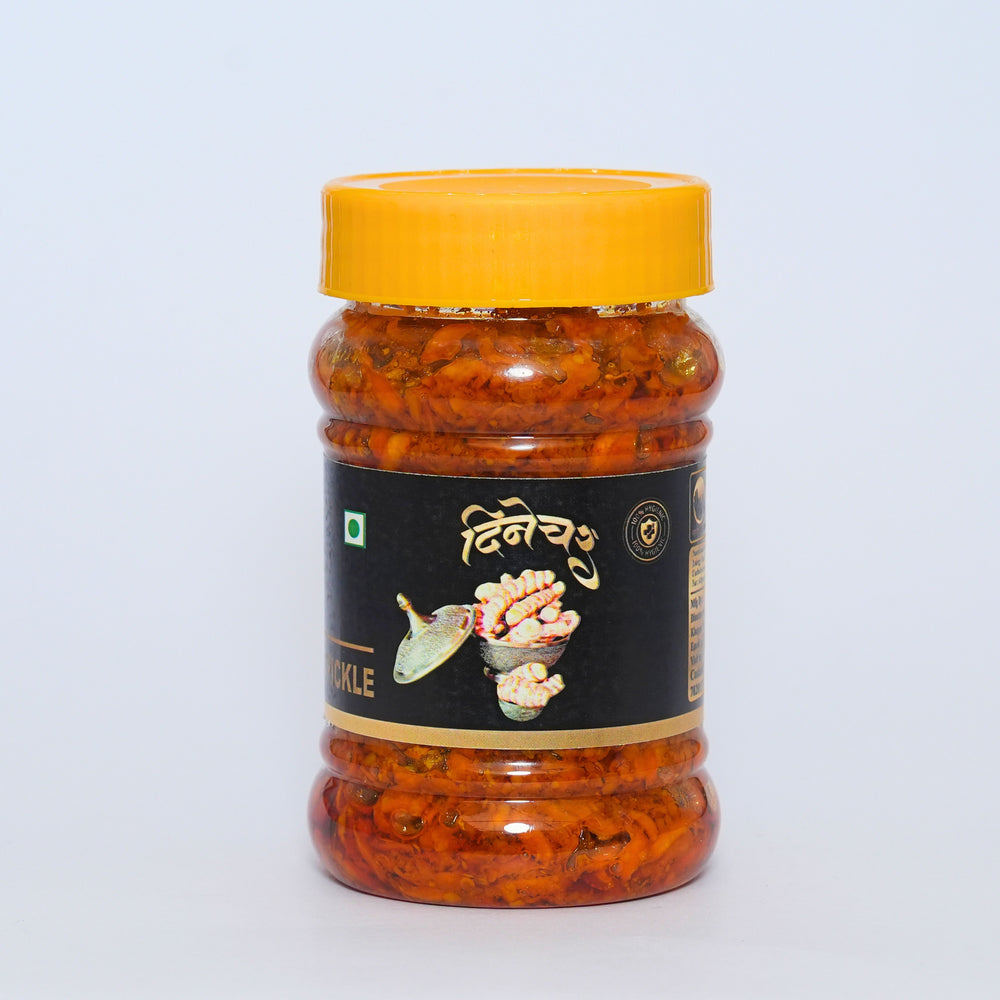 Introducing Turmeric Pickle from Dinature SHG, a delightful and healthy addition to your pantry. Handcrafted in Beed, Maharashtra, this turmeric pickle is made from high-quality raw turmeric fingers, packed with rich, earthy flavors and natural goodness. Turmeric, known for its anti-inflammatory and antioxidant properties, forms the base of this flavorful pickle, offering a unique taste experience with every bite. Ideal for enhancing your daily meals or as a standalone snack, this 200gm jar of turmeric pickle is a must-have for those who appreciate traditional, healthy foods. Made with the finest ingredients and care, it’s a testament to the skill and dedication of the women artisans at Dinature SHG.