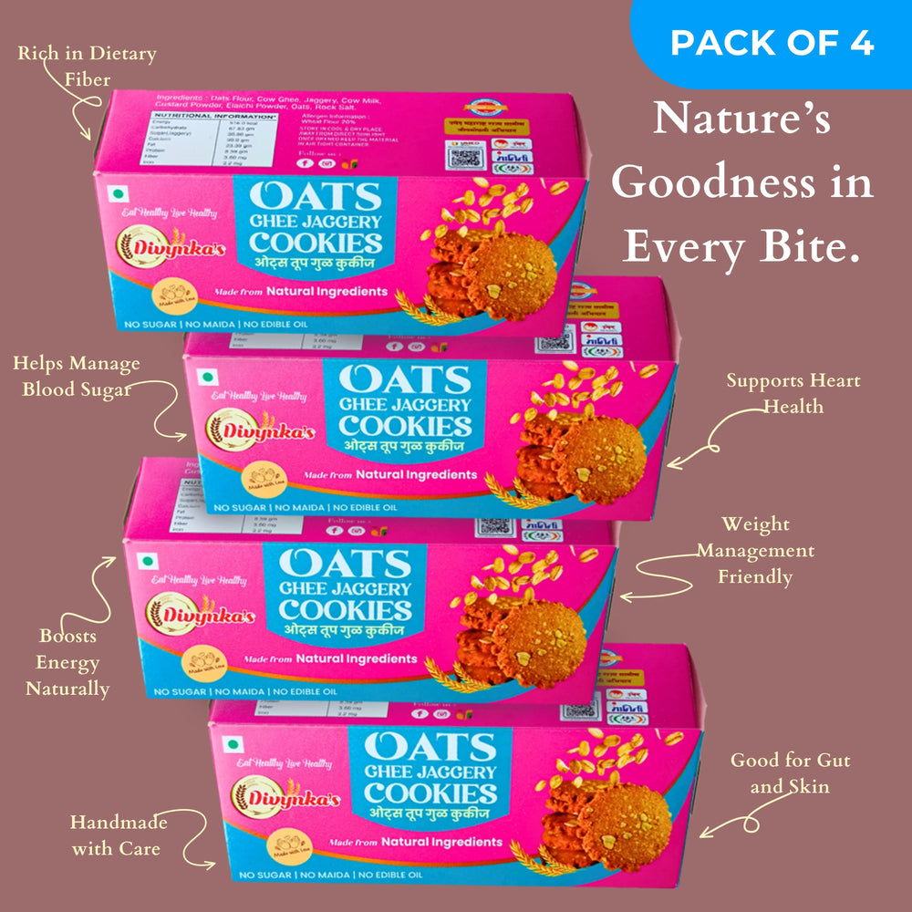 DIVYNKA Hand-made Oats Cookies, Pack of 4, Made by Organic Jaggery, No Maida, No Artificial colour, Pack of 100 gm