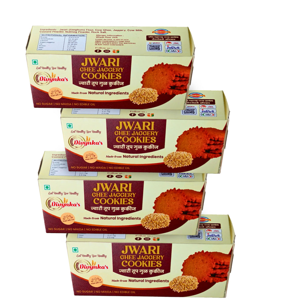 DIVYNKA Jawari Cookies – Healthy, Pack of 4, Handcrafted Cookies with Organic Jaggery, No Maida, No Artificial colour, Pack of 100 gm