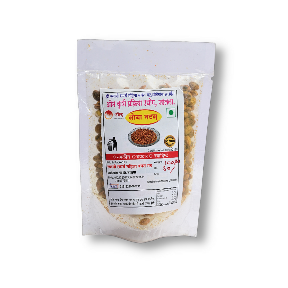 महाराष्ट्रातील जालना येथील स्वामी समर्थ बचत गटाने तयार केलेल्या सोया उत्पादनांच्या आरोग्यदायी जगात आपले स्वागत आहे. सोया गुडनेसचे हे 1000-ग्रॅम पॅकेट केवळ उत्कृष्ट नैसर्गिक घटकांचा वापर करून बनविलेले आहे, निरोगी, भेसळविरहित उत्पादन सुनिश्चित करते जे पौष्टिक आणि स्वादिष्ट दोन्ही आहे.