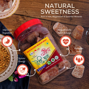 आरोग्यासाठी भरपूर फायदे: कपिला गूळ हा फक्त गोड पदार्थ नाही - तो आरोग्य वाढवणारा आहे. लोह आणि मॅग्नेशियम सारख्या खनिजांनी समृद्ध, ते पचन वाढवते, अँटिऑक्सिडेंट म्हणून कार्य करते आणि अशक्तपणा टाळण्यास मदत करते. कोणत्याही आहारातील शुद्ध साखरेचा हा एक योग्य पर्याय आहे, जो संपूर्ण आरोग्यास आधार देतो.