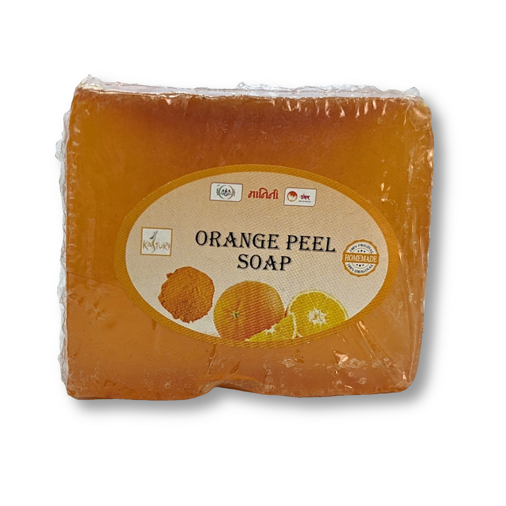 Introducing the KASTURI Orange Peel Soap, a premium, handmade soap crafted with care by the talented women of Kasturi Mahila Self-Help Group (SHG) from Satara, Maharashtra. This soap is designed to offer a natural skincare experience, made entirely with the finest natural ingredients. Free from harmful artificial chemicals, sulfates, and parabens, this soap nourishes and exfoliates your skin gently, leaving it soft, smooth, and rejuvenated. Infused with the goodness of orange peel, it provides natural exfoliation while protecting your skin with its nourishing properties.