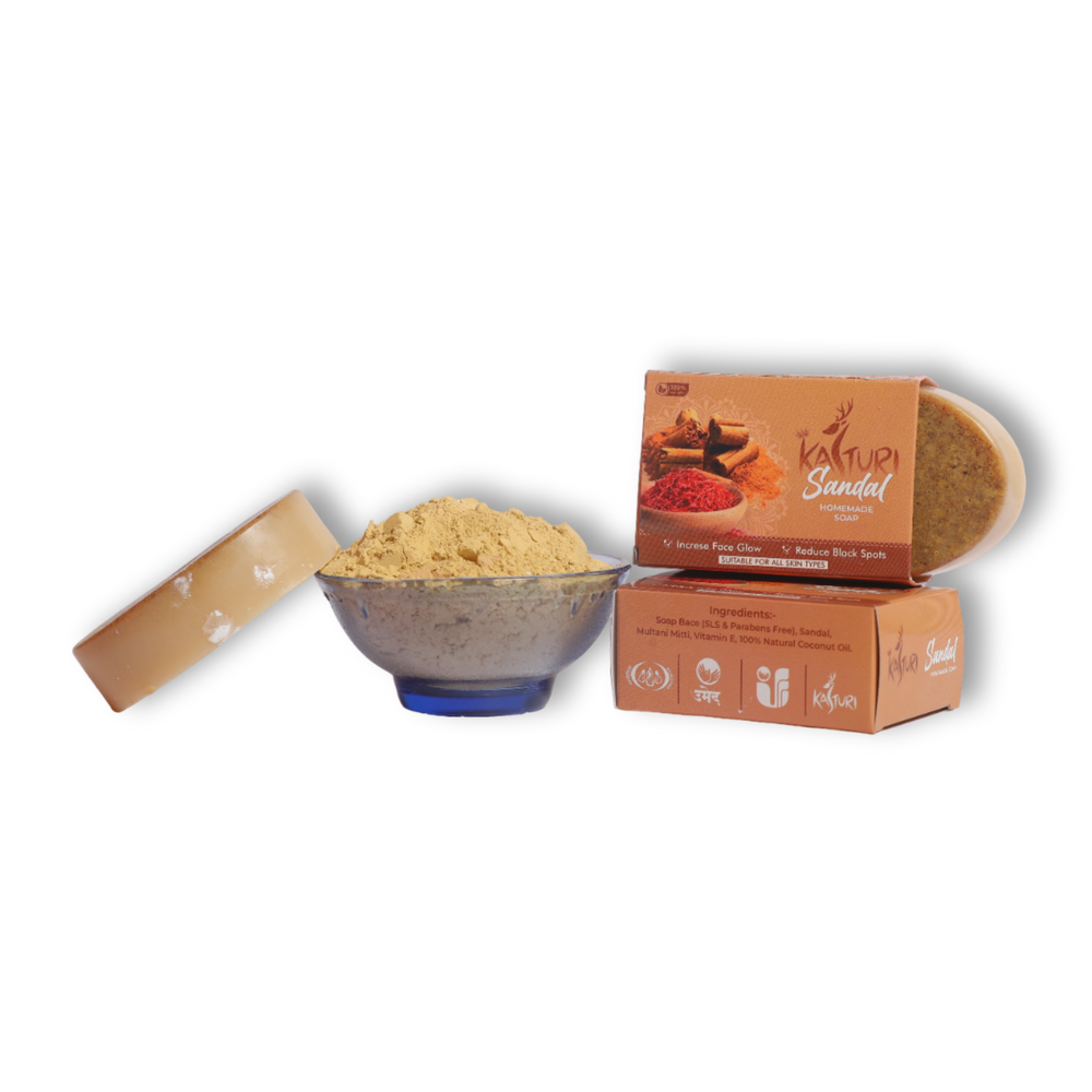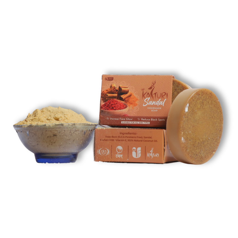 KASTURI Sandalwood Soap is more than just a cleansing bar—it’s a holistic skincare solution. The combination of natural ingredients like neem, aloe vera, and sandalwood offers a variety of skin benefits:
