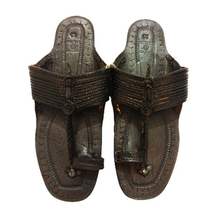 The Puda Kapashi Kolhapuri Chappal reflects the soul of rural Maharashtrian craftsmanship. Known for its distinct braided strap, hand-punched patterns, and strong leatherwork, this style has been a cultural icon for decades. The Puda stitching method is a signature of authenticity, traditionally practiced only by skilled artisans from the Kapashi region. Wearing these chappals is more than a fashion choice — it is a connection to history, culture, and artisanal excellence.