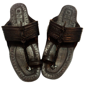 LIDCOM Puda Kapashi Kolhapuri Chappal Genuine Leather Handcrafted Black Traditional Footwear Pack of 1