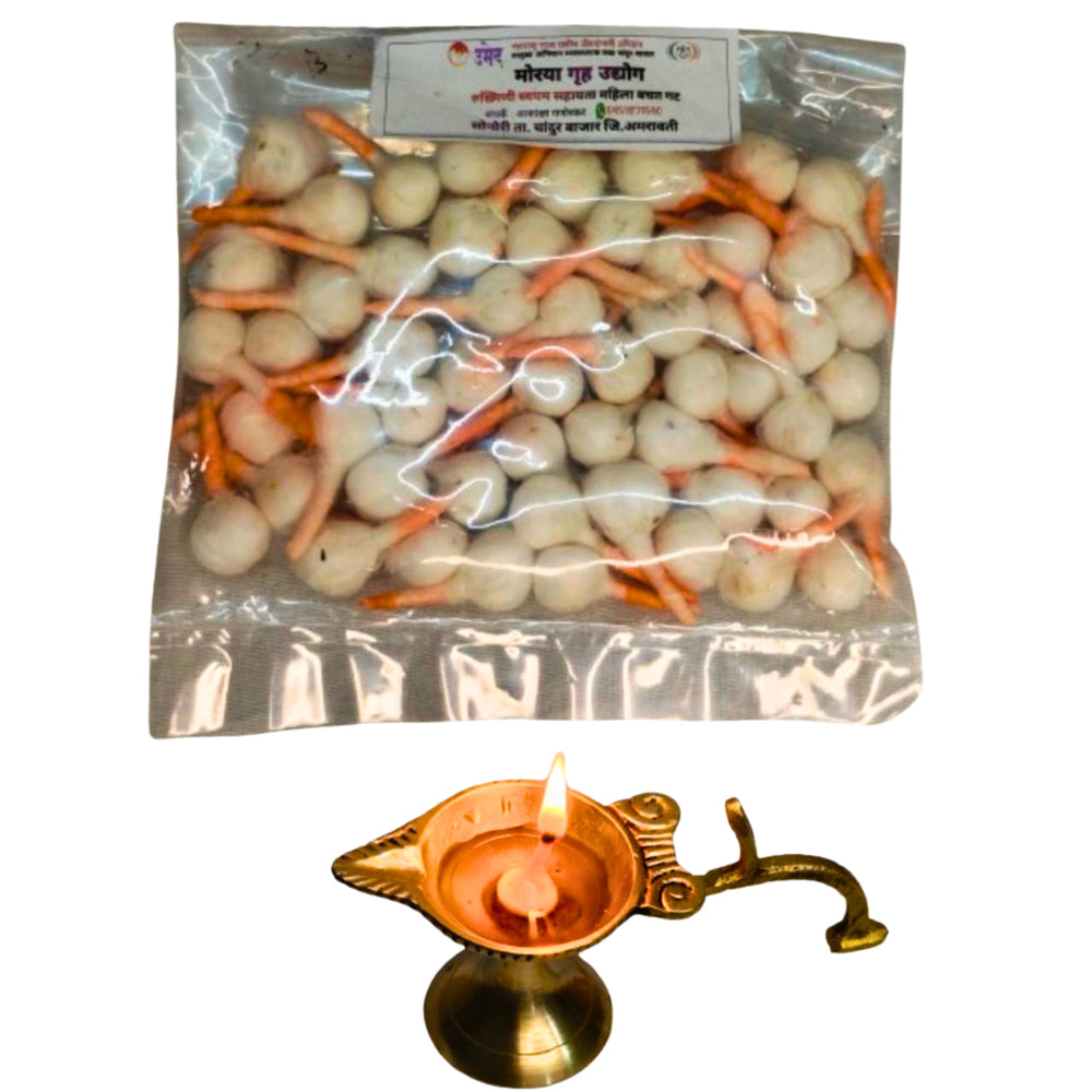 MORAYA Phool Batti Round Cotton Wicks for Diya, GOL Batti for Puja with Kesar Tip, Rukhamini SHG, Pack Of 1