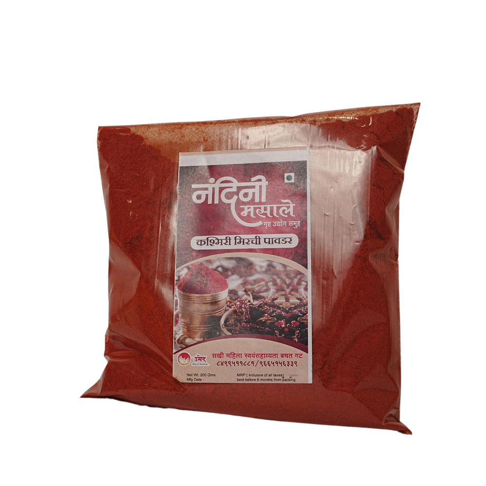 NANDINI MASALE, Kashmiri Mirch Powder, Sakhi SHG, Natural Ingredients, No Artificial Essence, Pack of 200 gm