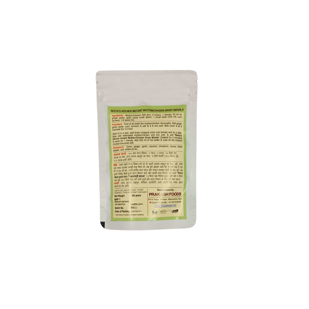 REETA"S KITCHEN Instant Mutton & Chicken Gravy Masala, Hirkani SHG, Made by Natural Ingredients, No Artificial Chemicals, Pack of 40 gm
