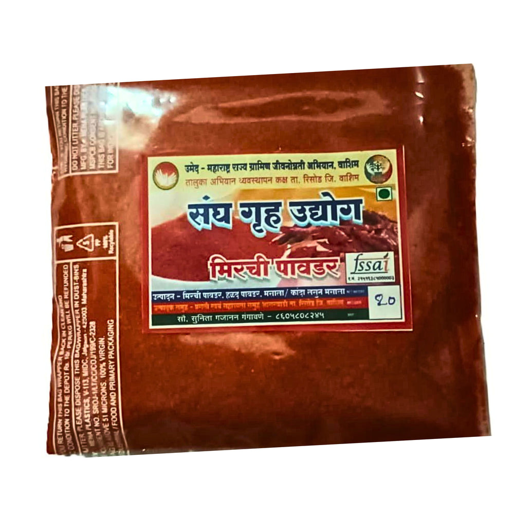 Sangh Chilli Powder is lovingly prepared by Pragati Swayam Shayata Samuh in washim. Every pack carries the patient craftsmanship of women artisans who balance traditional methods with hygiene and care. From sourcing to packing, their dedication ensures each unit delivers dependable quality to your table.