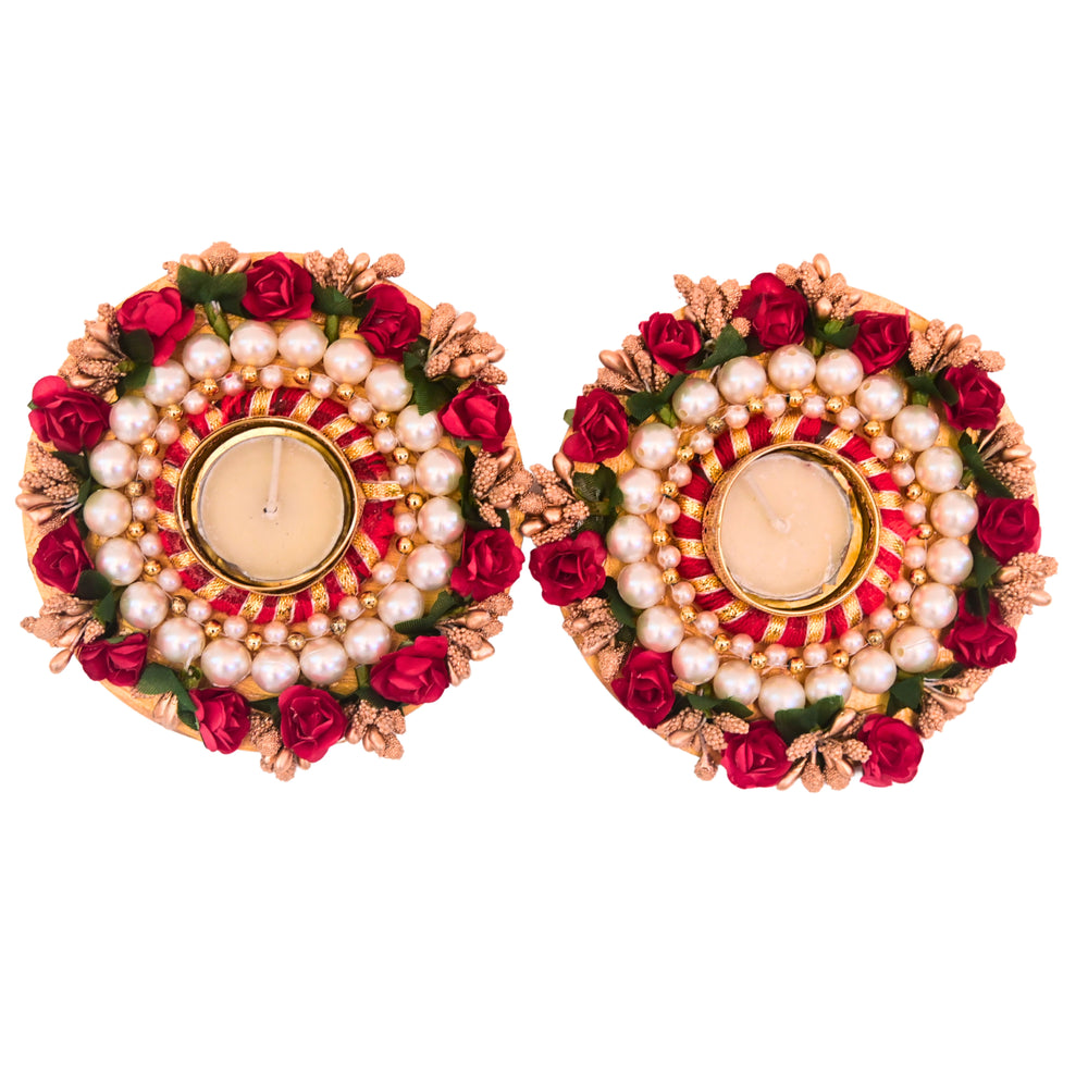 SNEHAL'S CRAFT House Red Rose Circle Candle Holder, 5x5, Made By Krantijyoti SHG, Pack of 2 Pieces