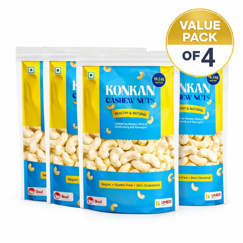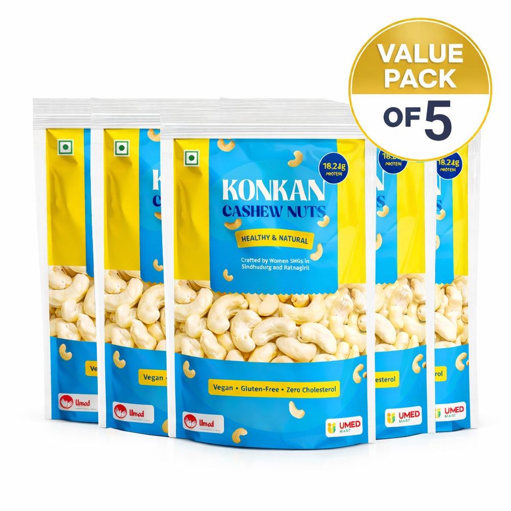 Choose natural nutrition and authentic Konkan quality with UmedMart Konkan Cashew 400 gm. Order now from UmedMart.com and support women-led rural enterprises while enjoying premium-quality cashew nuts for your home.