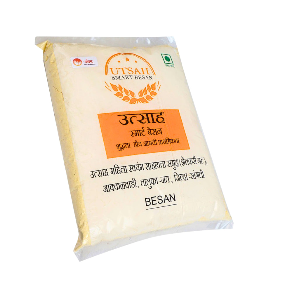 Utsah , Utsah Smart Besan Gram Flour (Besan Powder) is lovingly prepared by Utsah Mahila SHG, Utsah Smart Besan in Sangli district. Every pack carries the careful hands and quiet determination of women artisans who balance tradition with quality. From the selection of raw ingredients to the final packing, each step is done with care, dignity and a focus on delivering dependable taste and value to your family.