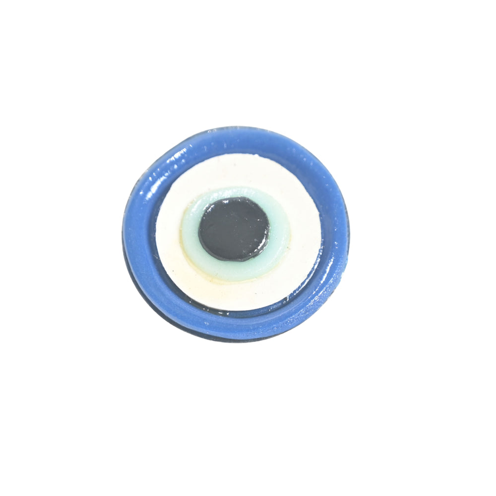 The pin features a detailed circular pattern, created with layered shades of deep blue, white and soft turquoise. Each unit is crafted in manageable batches, ensuring consistency, clarity and a smooth finish. Its compact size makes it ideal for bags, jackets, caps, notebooks or work accessories, adding a protective charm and stylish highlight.