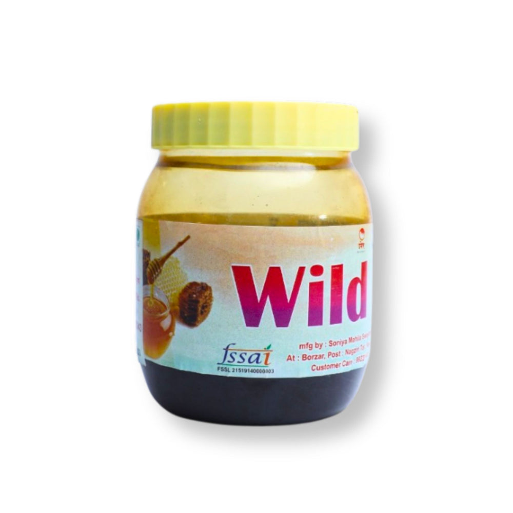 Introducing the WILD Natural Honey, a pure and organic delight handcrafted by the skilled women of Soniya SHG from Nandurbar, Maharashtra. This 250 gm pack of golden goodness is harvested naturally, ensuring unmatched flavor, nutrition, and authenticity. With no artificial flavors or preservatives, this honey is a true representation of nature's bounty. Every jar of WILD Natural Honey you purchase helps sustain rural livelihoods, empower women, and preserve traditional honey-making methods. Let this deliciously sweet nectar enhance your meals and health while contributing to a greater cause.