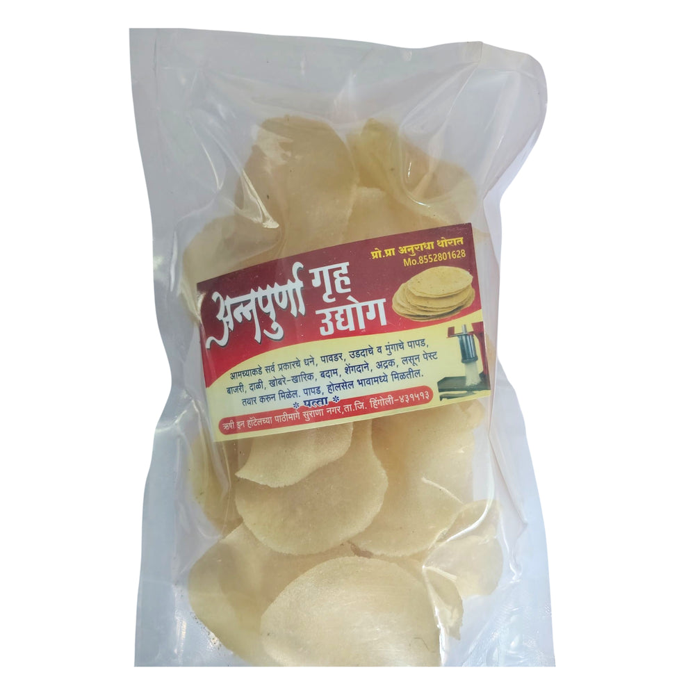 ANNPURNA tandul Papadi is carefully prepared by the women of Shree Swami Samarh SHG in Hingoli using rice flour and traditional papad-making techniques that have been part of rural kitchens for generations. Each pack represents patience, coordination and the quiet discipline of women who balance household responsibilities while sustaining traditional food practices.