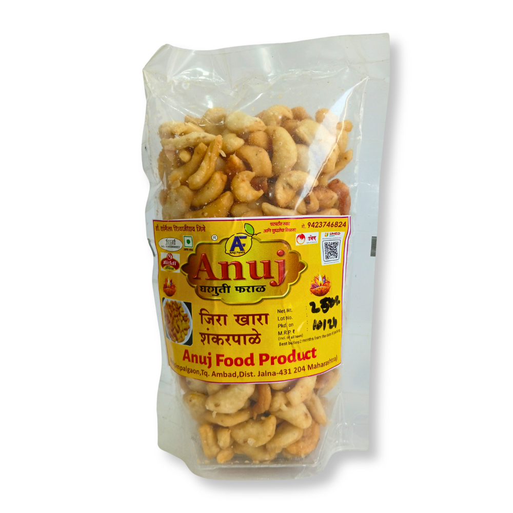 ANUJ FOODS Shankarpale, Jeera Khara Flavour, Made By Natural Ingredients, No Artificial Flavours, Pack of 250 gm