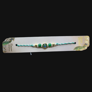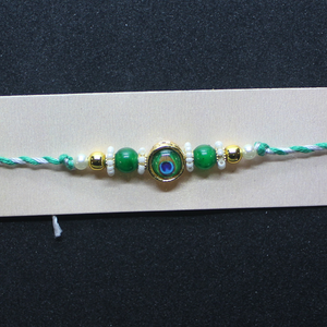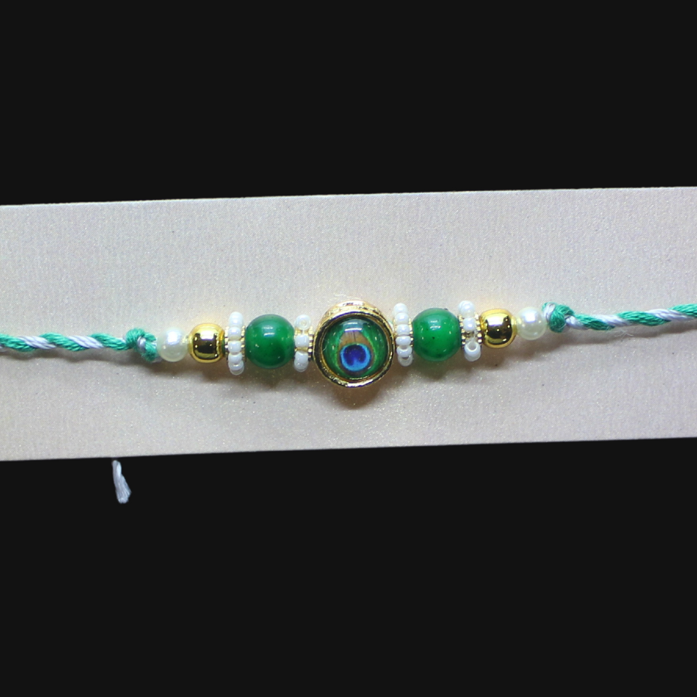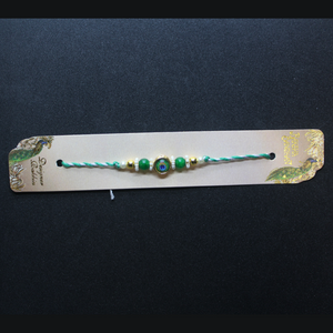 Arya, Handcrafted Artisan Crafted Green Bead Rakhi with Peacock Charm, Local Craftsmanship, Pack Of 1