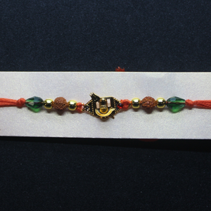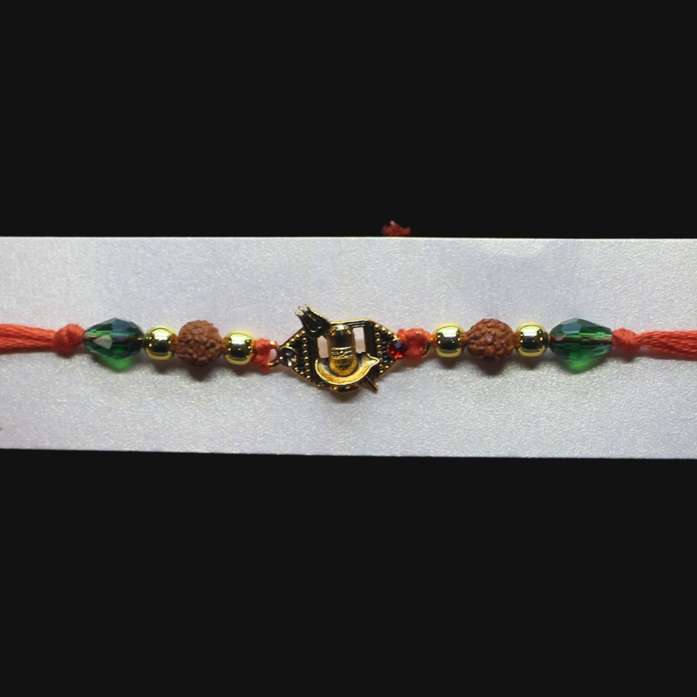 Arya, Handcrafted Sacred Shivling Rakhi with Green Beads, Local Craftsmanship, Pack Of 1