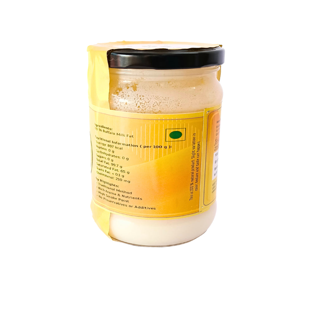 Buffalo Desi Ghee is prized for its dense nutrition, authentic taste, and multiple health benefits. It strengthens bones, boosts immunity, and improves digestion. Ayurveda recommends buffalo ghee for its cooling nature, promoting restful sleep and helping to balance body heat.