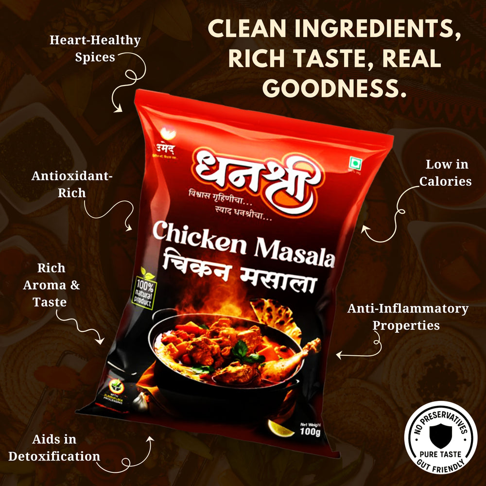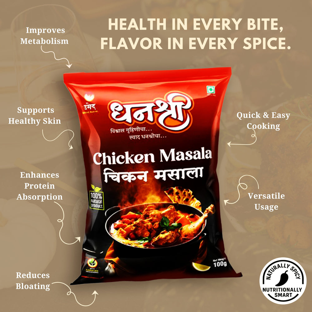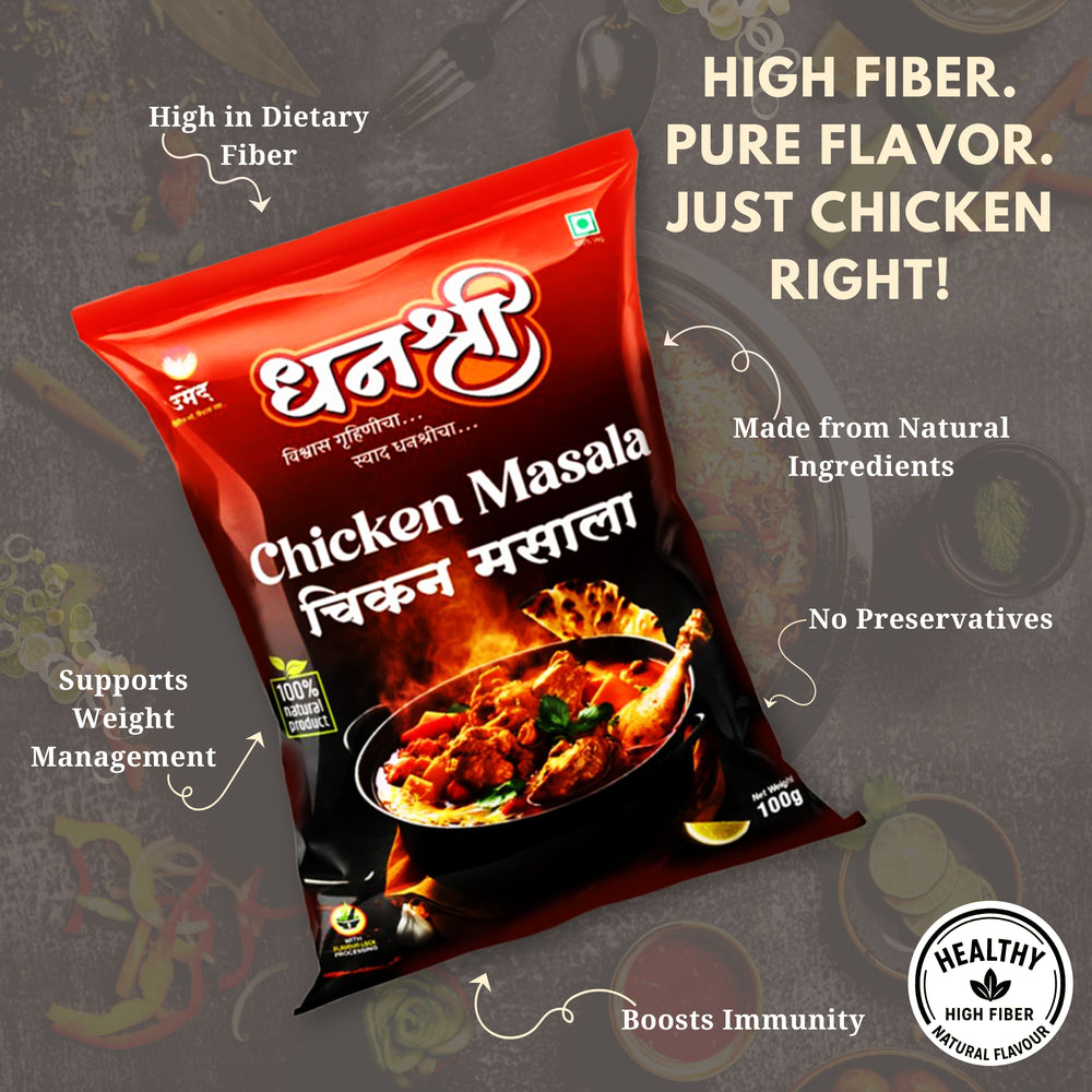 DHANASHREE, Chicken Masala, Healthy, Highly Fiberous, Natural Flavour, Pack Of 100 gm