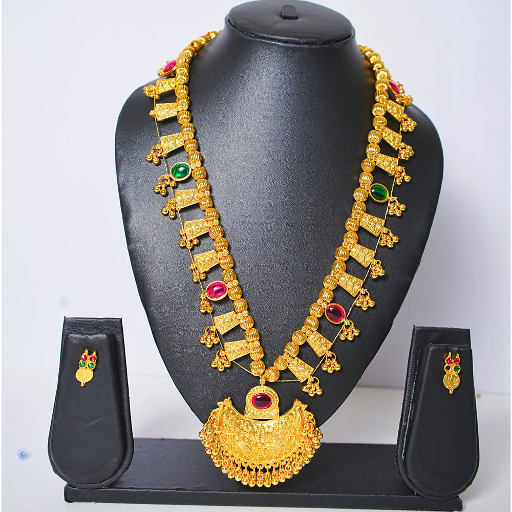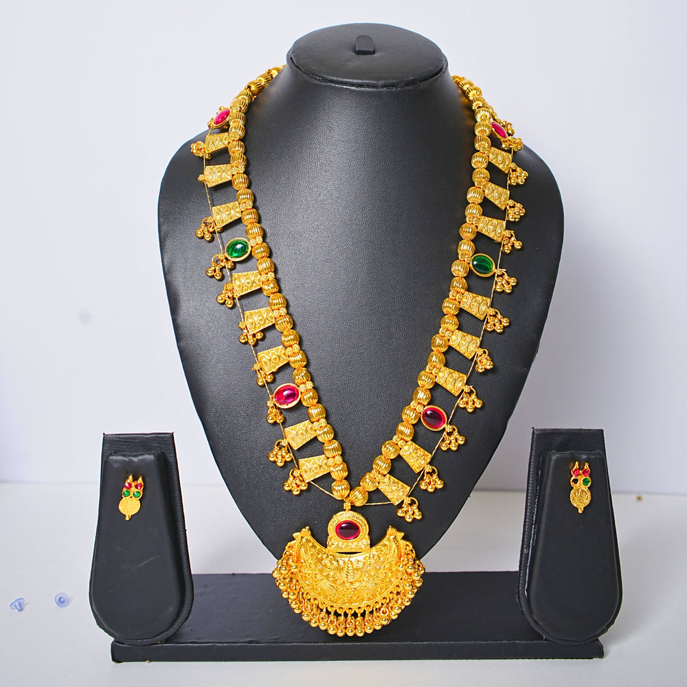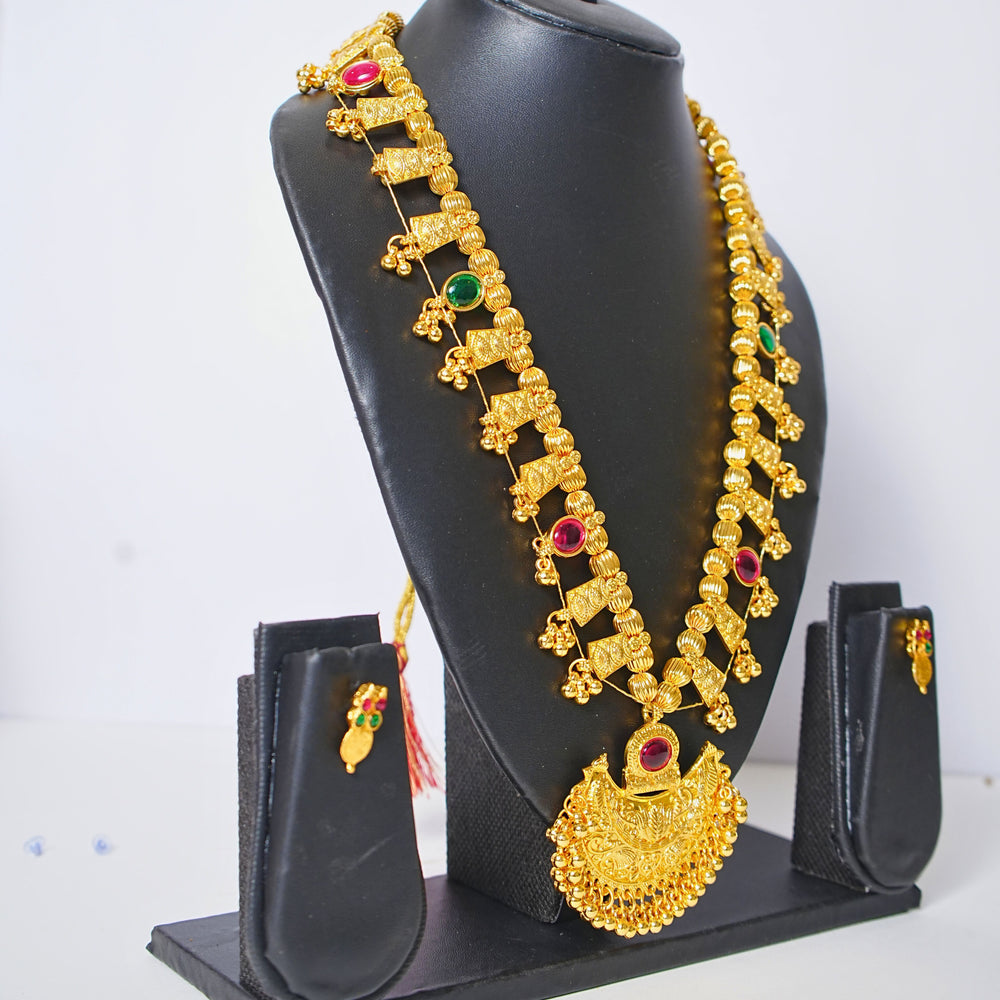 - Exquisite Laxmi Har design with golden-polished artificial pearls.