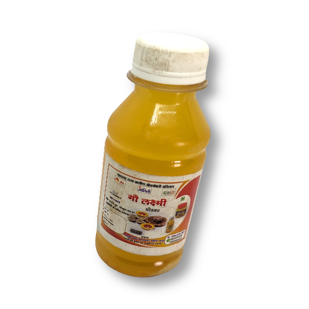 Experience the purity of Gau Lakshmi Gaumutra, a sacred product handcrafted by Yashaswi Svayam Sahayata Mahila Samuh in Jawali, Satara, Maharashtra. Our Gaumutra is enriched with the goodness of Panchagavya and contains no artificial essence.