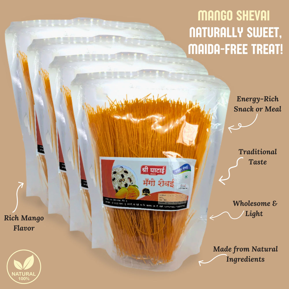 GHATAIDEVI SHG, Mango Shevai, Pack of 4, No Maida Made By Natural Ingredients, Pack of 200 gm