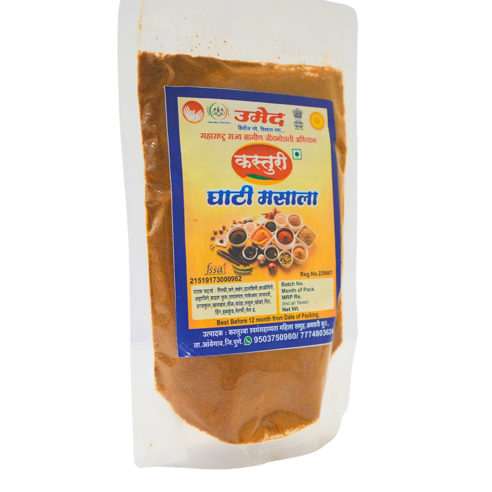 Upgrade your spice collection with Kasturi SP Ghati Masala. Available exclusively on UmedMart.com, this handcrafted masala brings the true essence of Maharashtrian cuisine to your kitchen. With every purchase, you empower rural women and support sustainable livelihoods. Get your pack today and enjoy a taste of tradition in every meal!