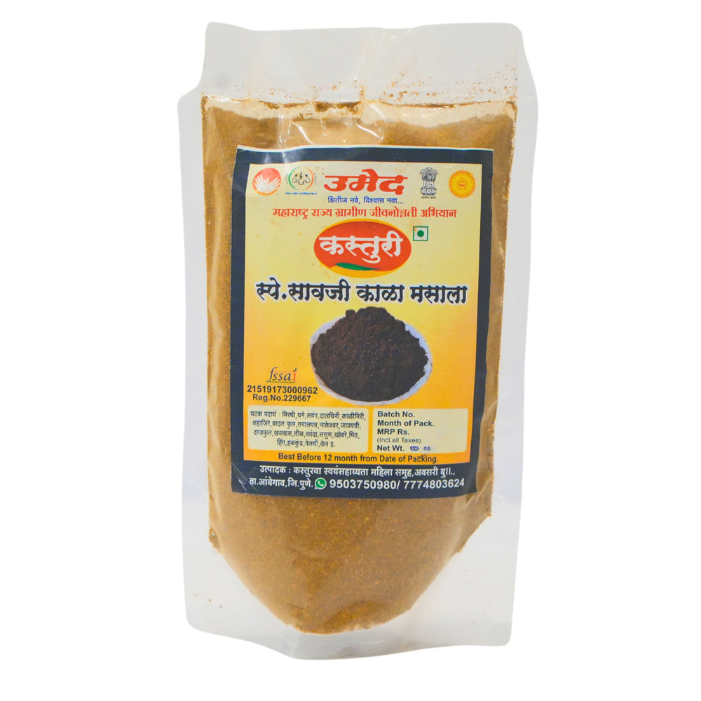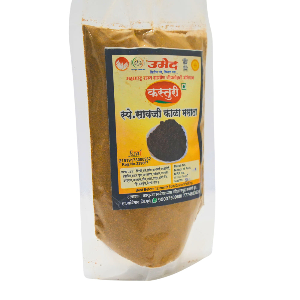 Indulge in the bold and flavorful taste of Kasturi Sp. Savji Kala Masala, crafted with care by Kasturba Mahila Bachat Gat from Avsari Budruk, Ambegaon, Manchar, Pune. This traditional spice blend is renowned for its deep, rich flavors, perfect for elevating your favorite Maharashtrian dishes. Awarded 1st rank by RajMata Jijau Mahila, this masala is free from artificial preservatives and chemicals, ensuring a healthy and authentic culinary experience.