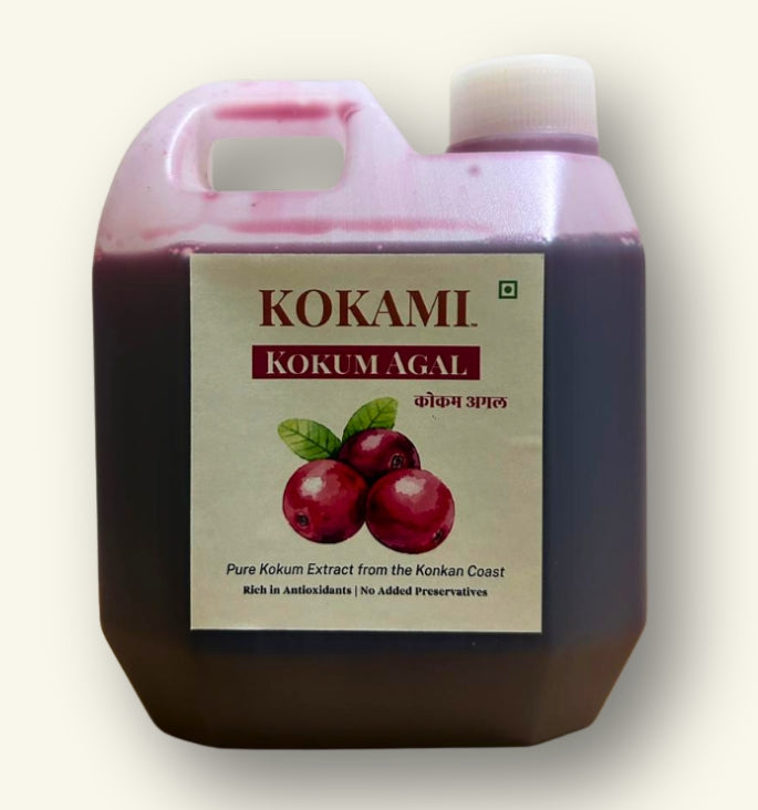 KOKAMI Kokum Agal is a concentrated extract made from sun-ripened kokum fruits sourced from the Konkan region. Known for its versatility and health benefits, this traditional ingredient is widely used in sol kadhi, curries, and refreshing beverages. It delivers an authentic tangy flavor while offering natural cooling properties.