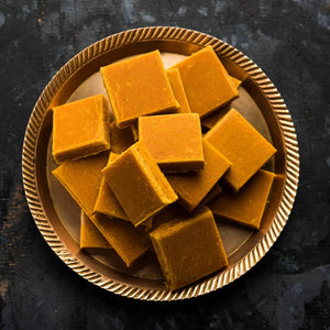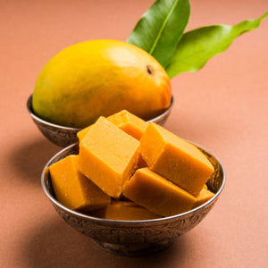 This mango burfi is prepared using time-tested sweet-making techniques that preserve the natural aroma, colour, and flavour of fresh mangoes without using artificial essence, synthetic flavours, or chemical additives. The slow cooking process enhances the richness while maintaining the authentic homemade taste that Indian households cherish.