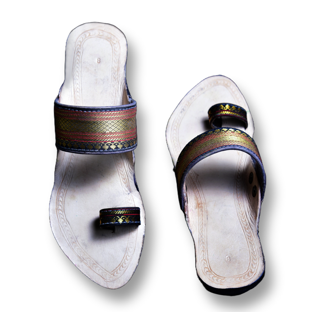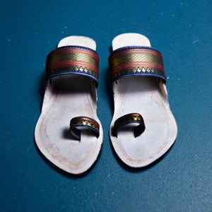 Kolhapuri Paithani Ladies Leather Footwear – Black and White | Handcrafted by Kolhapuri Artisans