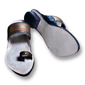 Experience the perfect blend of tradition and style with the Kolhapuri Paithani Ladies Leather Chappal in black and white, available now on UmedMart.com. Not only are you purchasing a beautifully handcrafted piece of footwear, but you are also supporting rural artisans and promoting sustainable, eco-friendly fashion. Every step you take in these chappals contributes to the empowerment of women and the preservation of a rich cultural legacy. Don’t miss the opportunity to own a piece of Kolhapur’s artisanal craftsmanship – order your pair today and make a difference with every step you take!