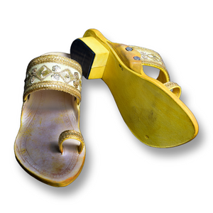 Take a step into tradition and style with the Kolhapuri Paithani Ladies Leather Chappal in yellow and white. Available exclusively on UmedMart.com, your purchase directly supports rural artisans, promotes sustainable fashion, and empowers women in Maharashtra. Each pair of chappals is a testament to the rich heritage of Kolhapur, combining comfort, durability, and style. Don’t miss your chance to own a piece of this proud tradition – order today and walk with pride knowing that your purchase makes a positive impact on the lives of rural artisans.