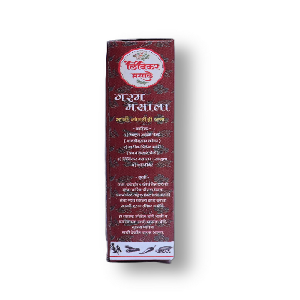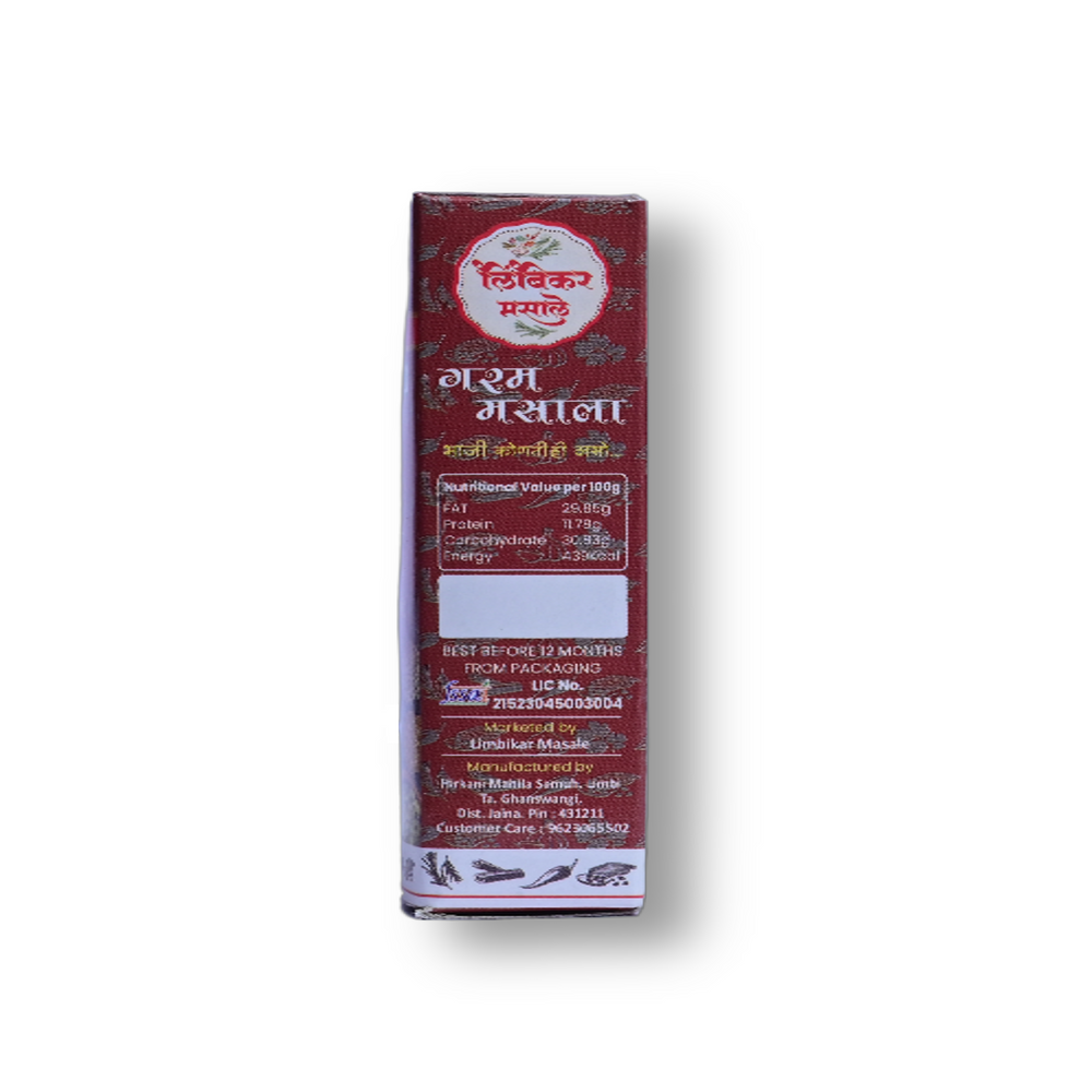 Experience the rich and authentic flavors of Maharashtra with LIMBIKAR MASALE Garam Masale, skillfully crafted by Hirkani Masala Utpadak Gat from Ghansawangi, Jalna, Maharashtra. Each 100 gm pack is a testament to quality, made with natural ingredients and without any artificial flavoring.