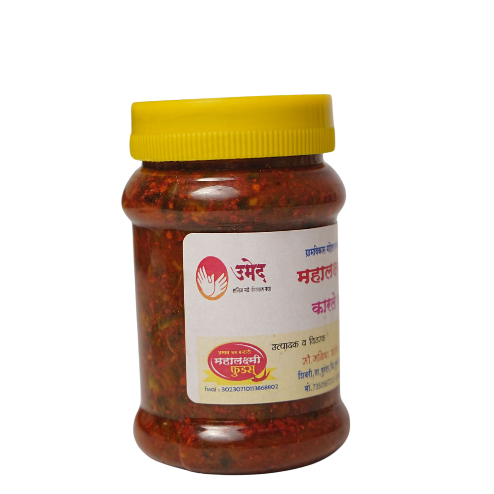 Discover the perfect blend of taste and health with Karla Pickle, crafted by Gramvikas Mahila SHG from Purandar, Pune. This award-winning pickle, recognized with the prestigious 1st Rank by Ahilyadevi Computation, is made using carefully selected bitter gourds (karla) and traditional spices. A favorite in Maharashtrian households, this pickle is prepared without artificial preservatives or chemicals, ensuring a safe and healthy choice for you and your family.