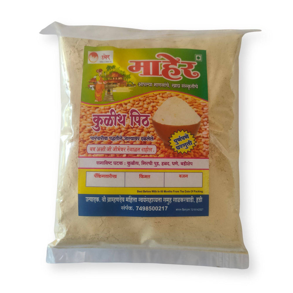 Discover the authentic taste of Maharashtra with MAHER Kulith Peeth, carefully handcrafted by BRAMHANDEV SHG from HADI Sindhudurg, Maharashtra. Each 200 gm pack is a testament to purity and quality, made solely from natural ingredients without any artificial chemicals.