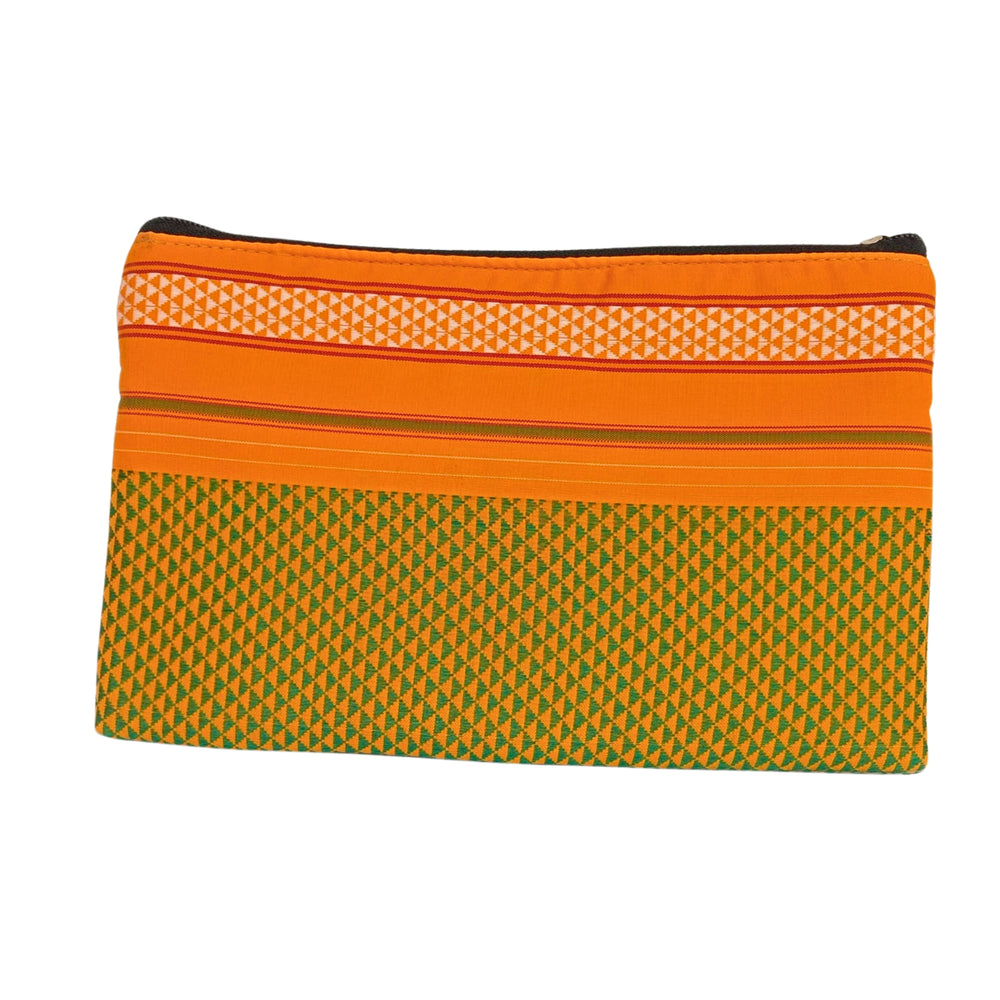 MANGALMURTI Hand Khan Pouch, Small Size, Green Orange Colour, Handmade by Swamini SHG, Eco-friendly and Washable, Pack Of 1 no