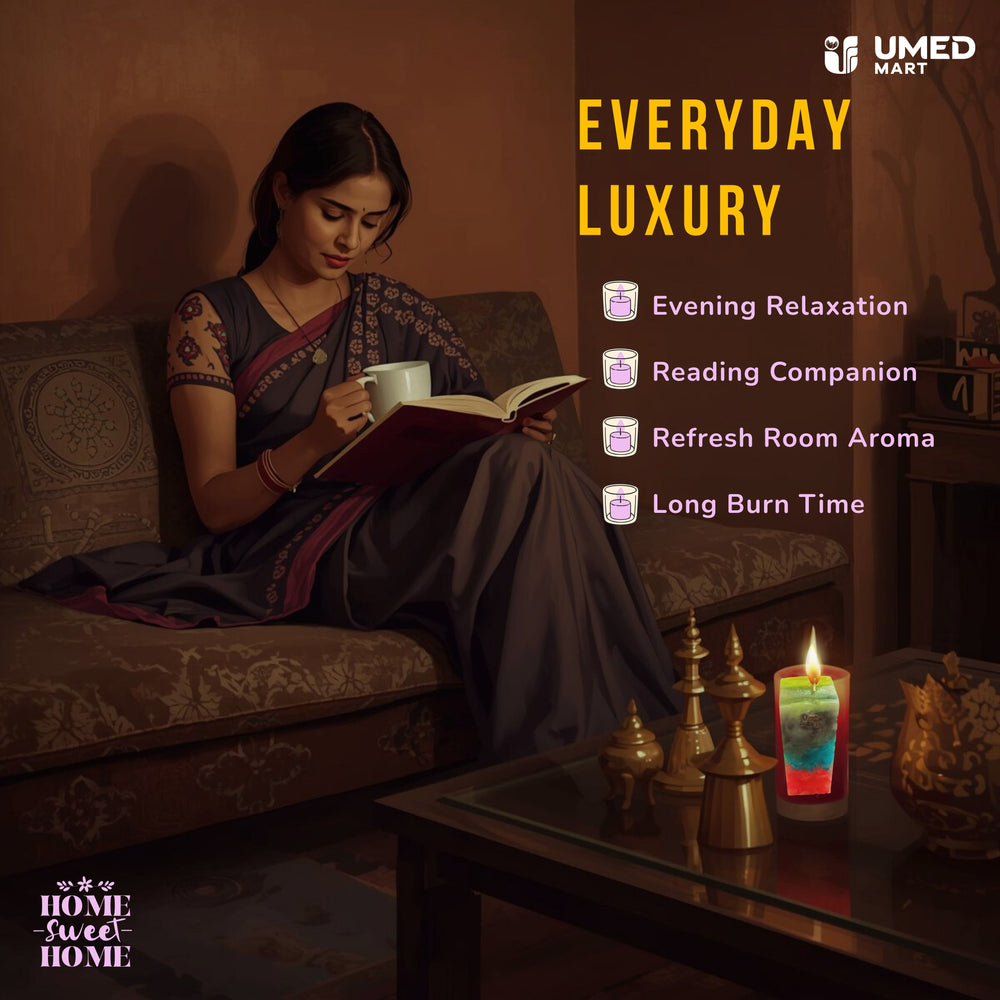 • Handcrafted Floral Candle: Made using traditional hand-poured wax techniques.Colorful Decorative Design: Bright, vibrant colors suitable for home décor and festive use.Long-Lasting Aroma: Soft floral fragrance that promotes relaxation and calmness.Clean-Burning Wax Blend: Smooth, consistent flame with minimal residue.Women SHG Product: Created by Mauli Mahila SHG, supporting rural livelihoods.